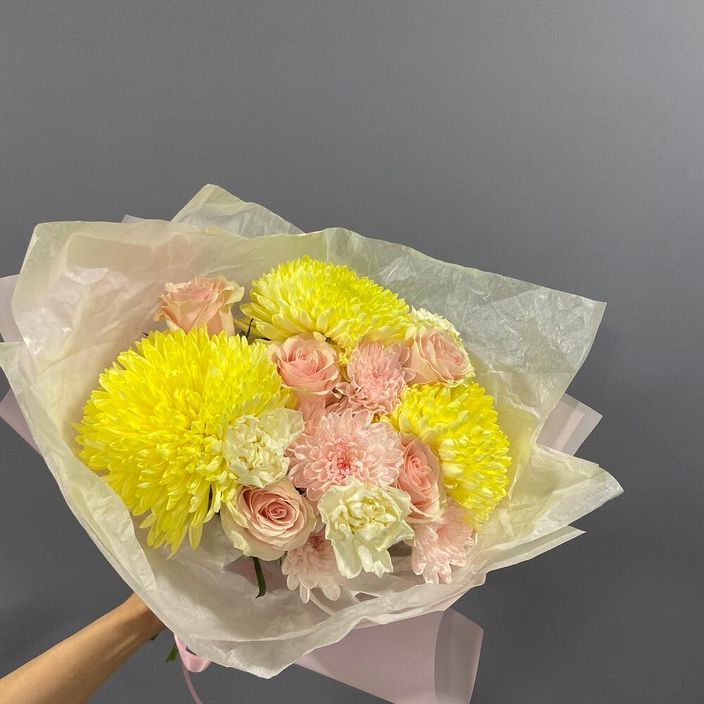 Большой букет с хризантемой и розой