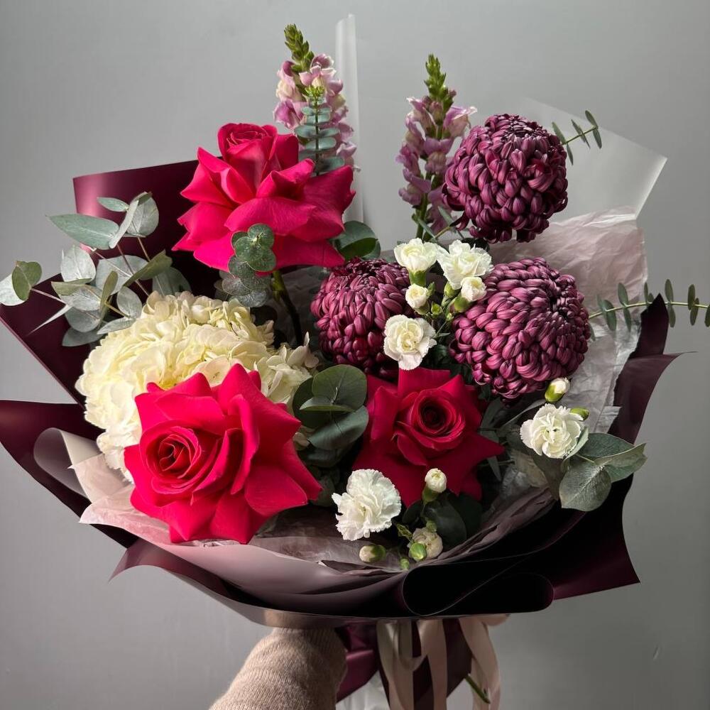Авторский букет с хризантемой бигуди в Кудымкаре