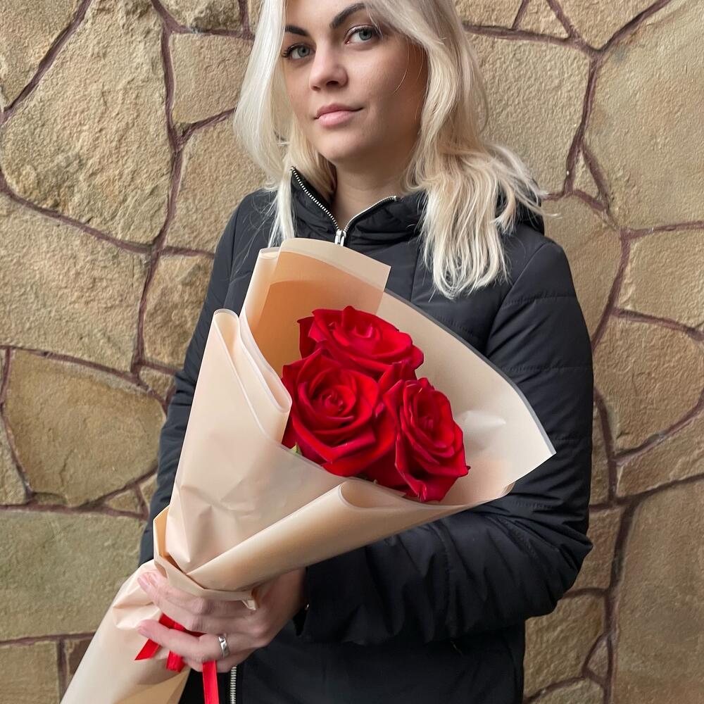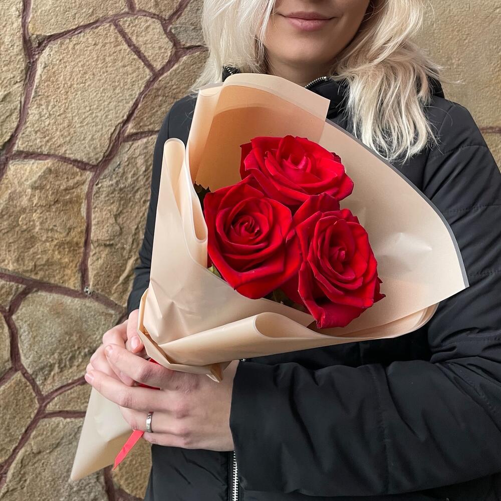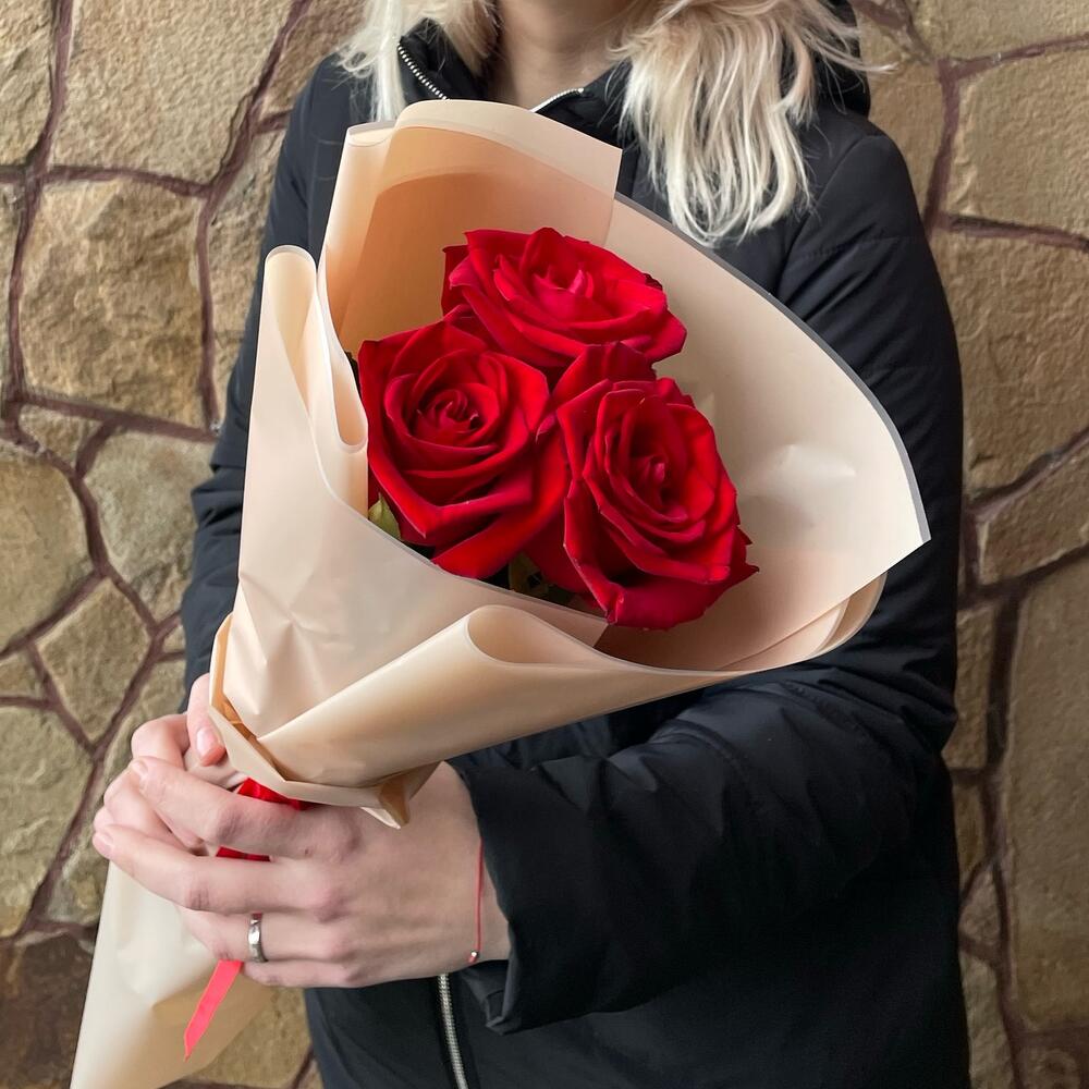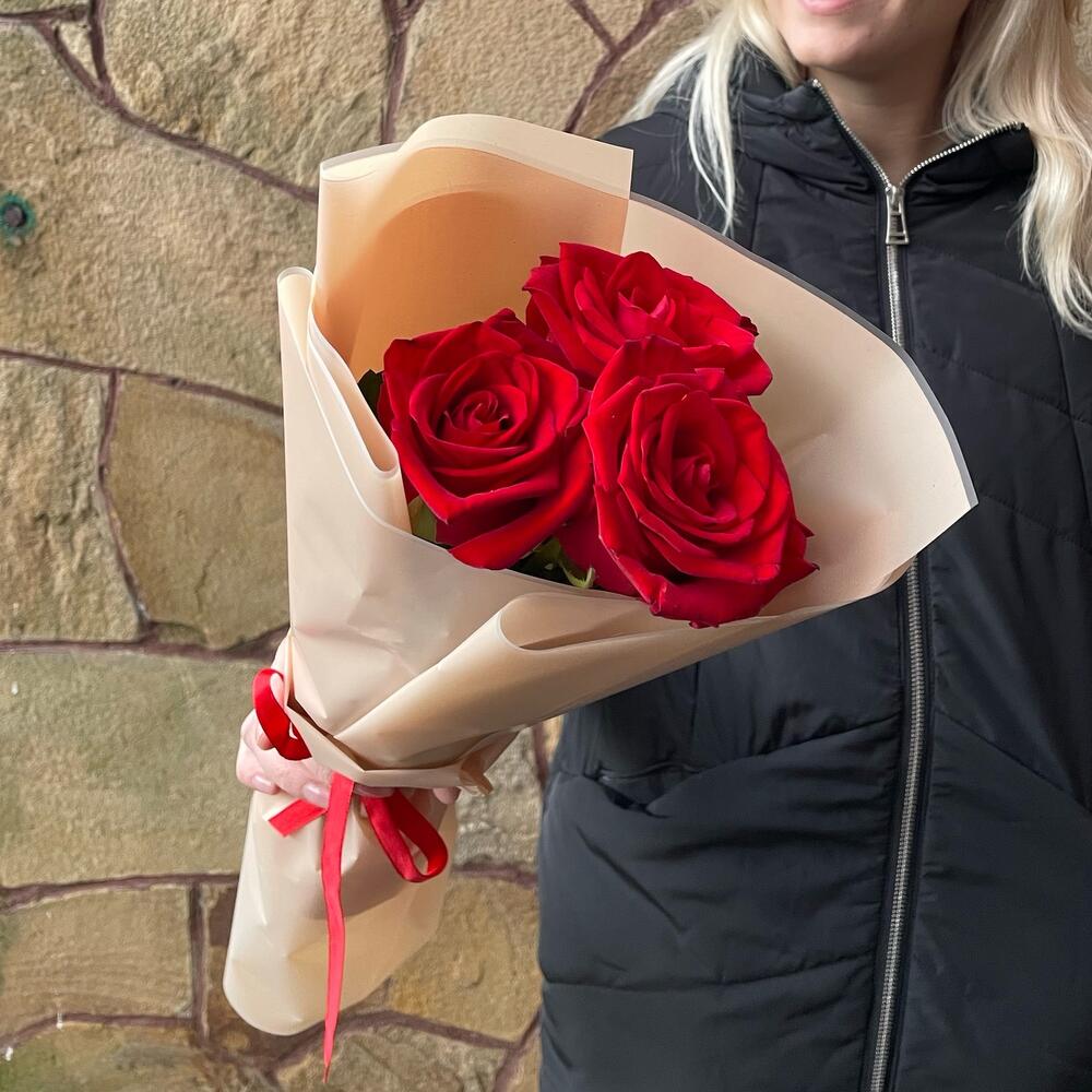 Букет-комплимент из красных роз 3шт в Кудымкаре
